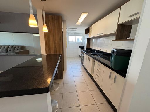 A sacada frontal com churrasqueira a carvão valoriza ainda mais o imóvel, ideal para momentos de lazer com vista urbana privilegiada.