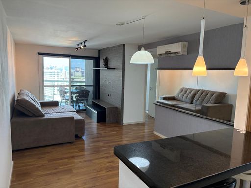 Em andar alto e de frente para a Rua Camboriú, o imóvel conta com 2 dormitórios, sendo 1 suíte, além de banheiro social, oferecendo uma planta funcional e bem distribuída. A área social é composta por sala de estar, sala de jantar e cozinha integradas, proporcionando amplitude e excelente aproveitamento dos espaços.